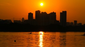 东湖傍晚6点的皮划艇