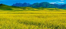 油菜花以熔金般的烈度,泼洒于层叠的梯田;绿绒般的山峦怀抱着村落,如守护散落的星辰;而远山以青黛为笔,在天幕上勾勒出永恒的背影。