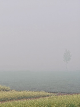 晨雾给田野盖上薄纱,
