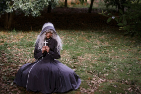 我的裙摆沾满昨夜的雨,蕾丝边沾着未干的泪,我提着过大的裙摆奔跑,却追不上——自己褪色的影子。
